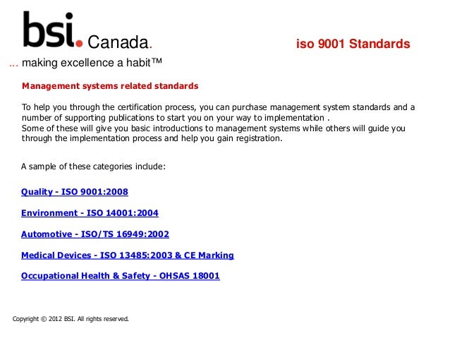 Designed to be a powerful business improvement tool ISO 9001 Quality Management certification can help you to. Onsite live ISO Standards training can be carried out locally on customer premises in Canada or in NobleProg corporate training centers in Canada. This is a list of published International Organization for Standardization ISO standards and other deliverables.
